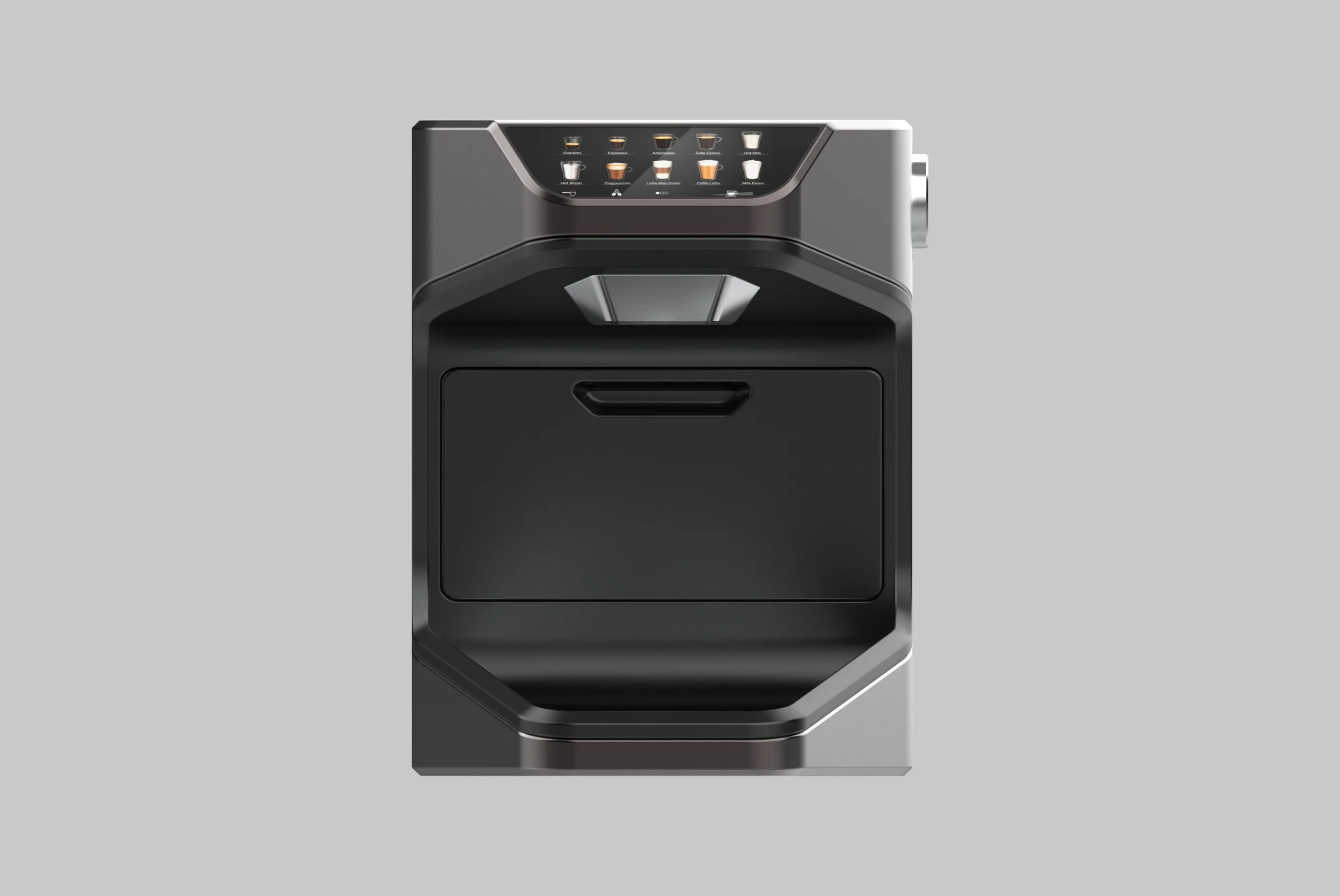 The KA - 02 is the most compact and ergonomic super-automatic espresso machine, while maintaining the core features that every consumer has learned to love and more importantly all within an elegant package. Real-time monitoring and coffee brewing is possible with the companion app available on smartphones and the modular platform allows for the easiest and most graceful maintenance of any other modern coffee machine. The machine houses many proprietary systems, including a sleek 5.2” touchscreen, 60oz bean hopper, 60 fluid oz water reservoir, internal burr grinder, integrated compressor unit with accompanying removable milk carafe 32 fluid oz and the largest mug clearance of any other super-automatic at 7.5”.